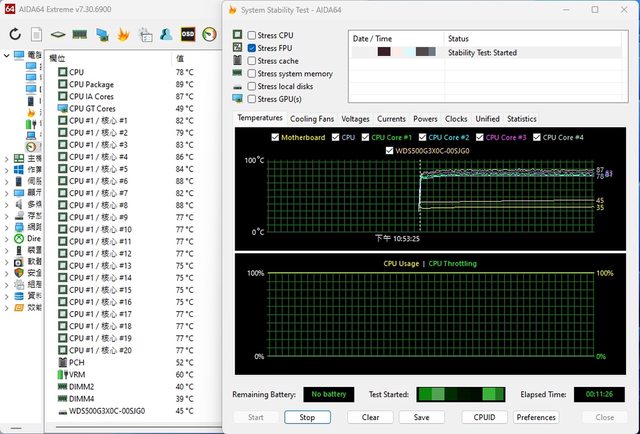 核心平均84.375。(時間顯示30分是因為烤機過程中我手殘讓系統時間自動更新)