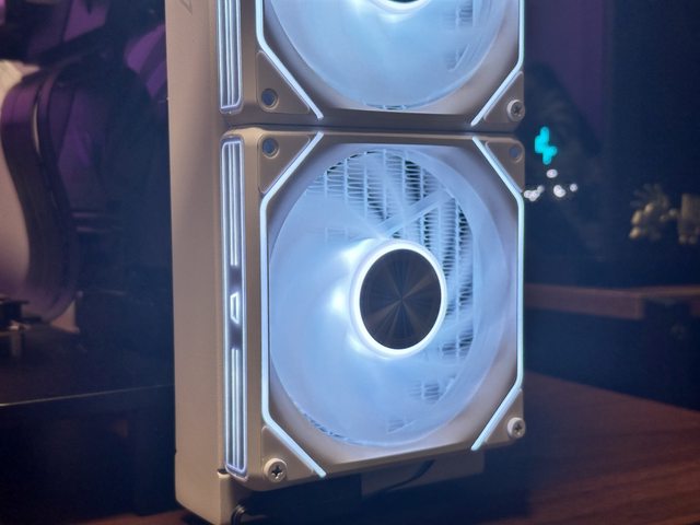 不過本次僅展示風扇,故拆除顯示卡繼續!把水冷風扇換成DF G24並調成白光。