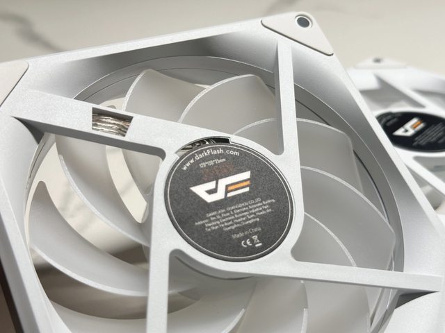 風扇前方軸承處為金屬貼紙,後方則為黑色帶DF LOGO的紙質貼紙。
