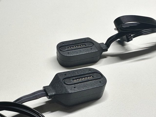 前後側則為連結位置,採用磁吸方式串接風扇,看得到磁鐵及彈簧針的那側為風扇串接觸