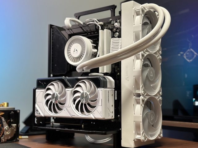 還是來看裝機效果吧,本次裝機展示使用直立裸測架「速顏B款」,將各零組件都裝上後