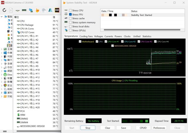 首先是AC 3代水冷搭配原裝P12 ARGB風扇,於單烤FPU約10分鐘後溫度為Package 91度、P
