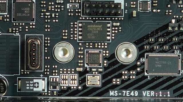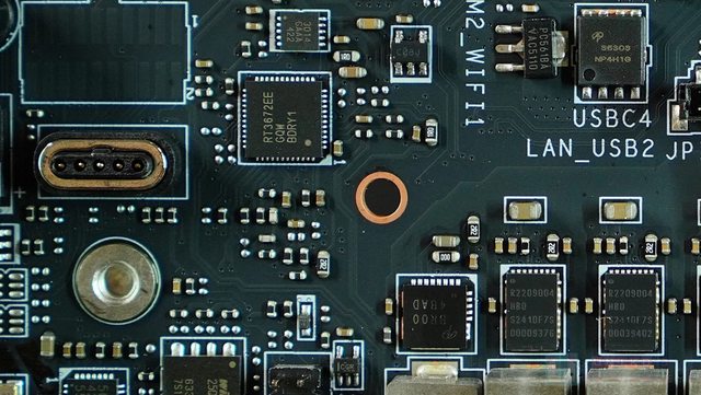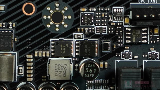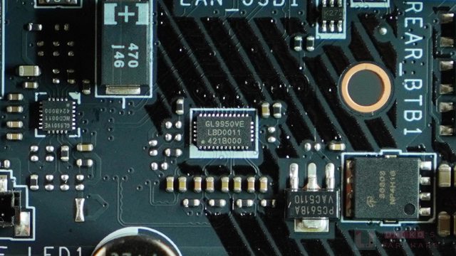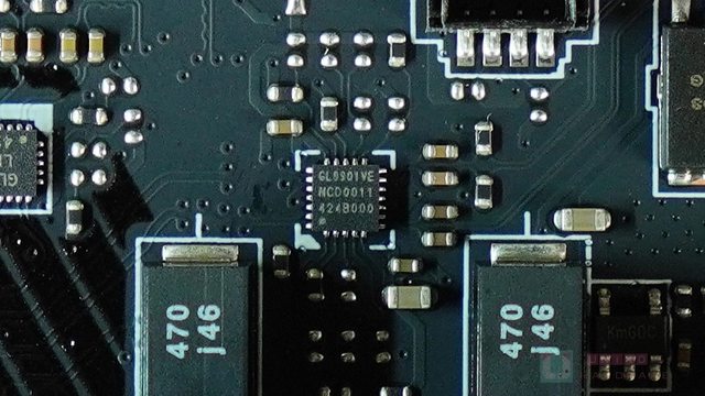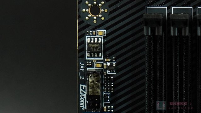 ‧ NUVOTON NCT6687D-R SUPER I/O 晶片位於 PCB 背面,管理風扇 / 電壓 / 溫度等和開