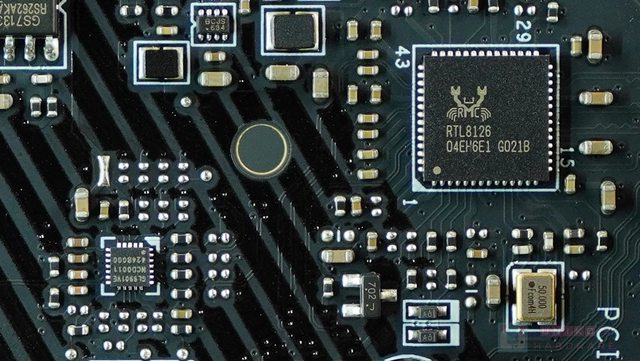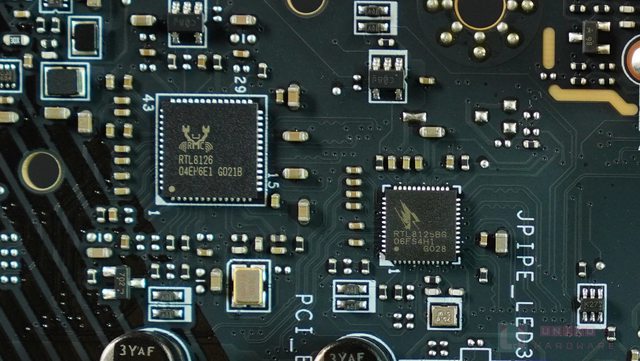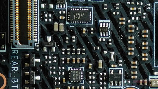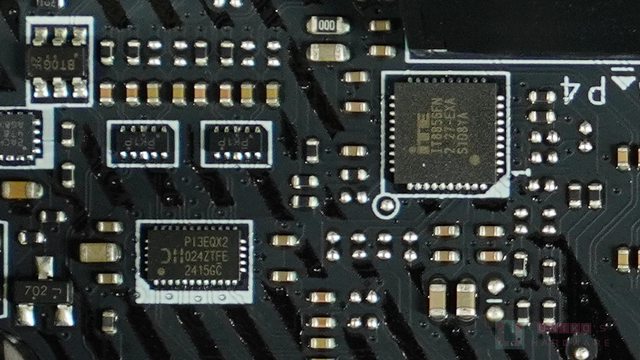 ‧ 在 PCI_E3 插槽上方,PCB 背後有一顆 DIODES PI3EQX16021,正面有一顆 PI3EQX1601