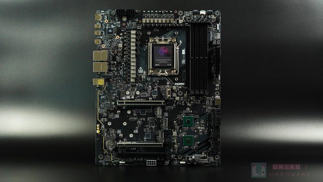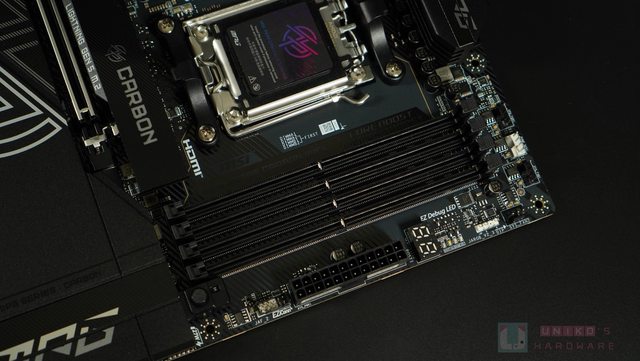 X870E CARBON 正面存在大量裝甲覆蓋大部份 PCB,都是黑色為主。