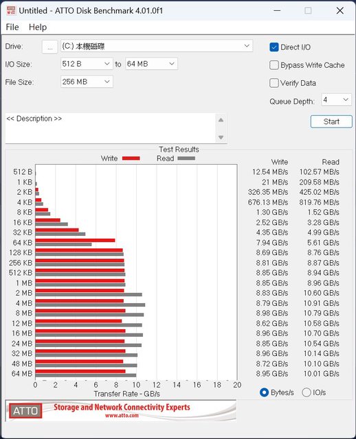 再來是ATTO的讀寫能力測試