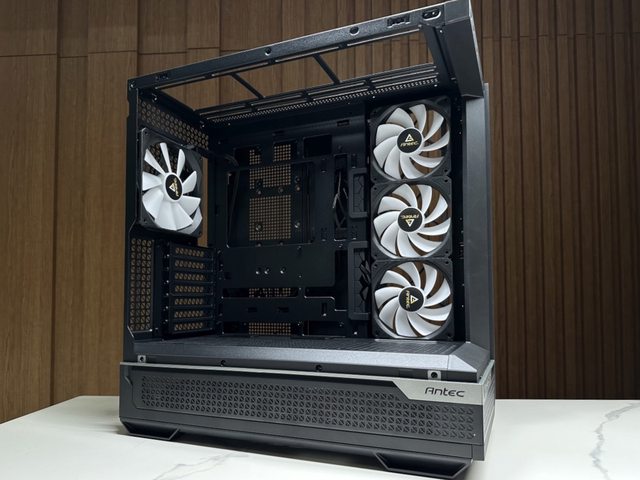Antec C7 ARGB特色之一是在單艙架構下,側邊進氣能安裝3顆120mm風扇。不少單艙架構