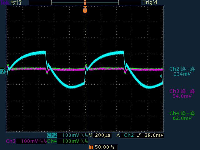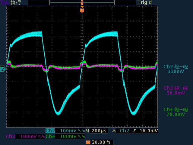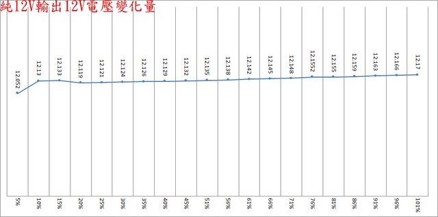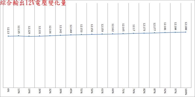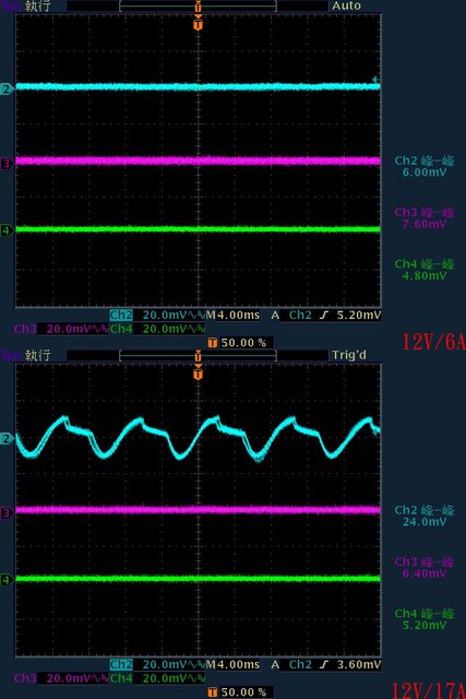 波分別為16.8mV/13.2mV/18mV,於純12V全負載輸出下12V/5V/3.3V各路低頻漣波分別為