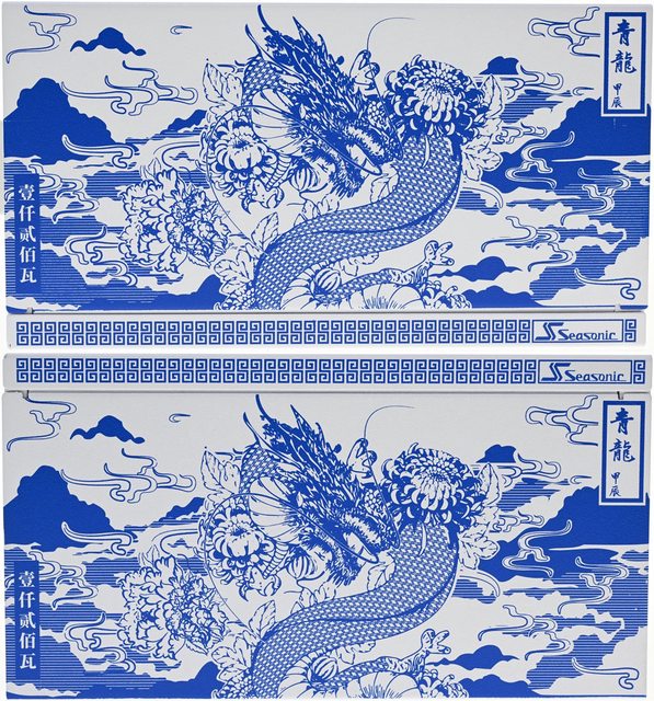 ▼本體兩側外殼印上青龍甲辰落款、龍圖案、壹仟貳佰瓦國字、Seasonic商標