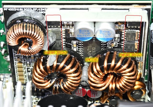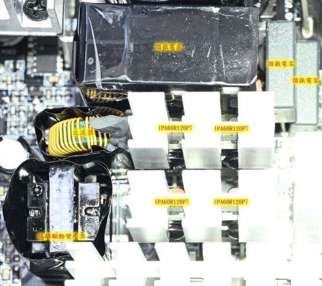○APFC及一次側MOSFET採用Infineon,APFC二極體採用Wolfspeed,二次側12V同步整流及