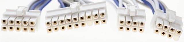 ▼主機板/處理器/顯示卡電源模組化線路接頭採用鍍金高電流金屬連接器