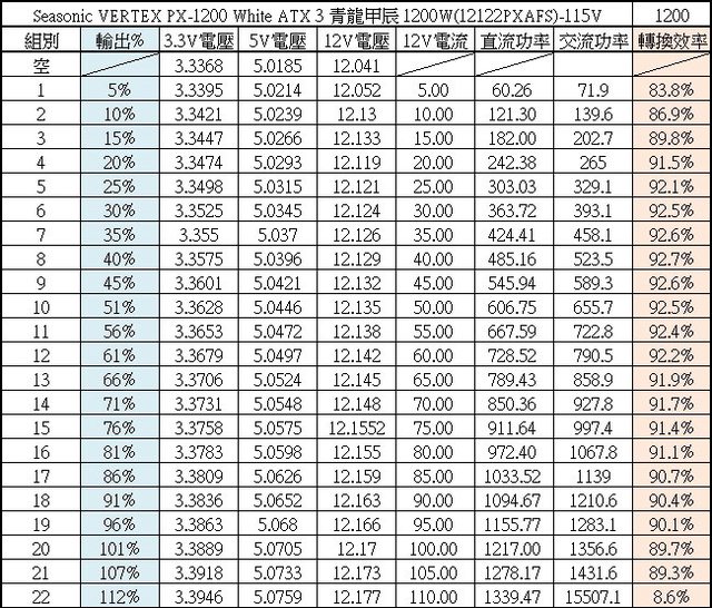 ○偏載測試,12V維持空載,測試3.3V滿載、5V滿載、3.3V/5V滿載的3.3V/5V/12V電壓變