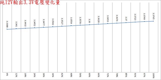 ○偏載測試,12V維持空載,測試3.3V滿載、5V滿載、3.3V/5V滿載的3.3V/5V/12V電壓變