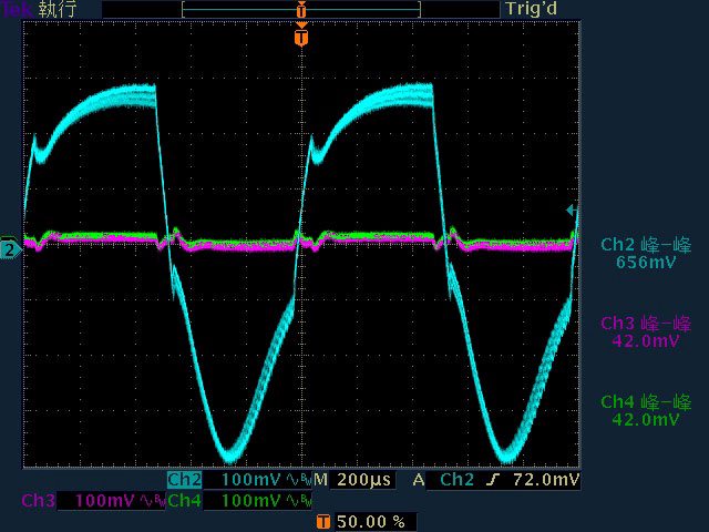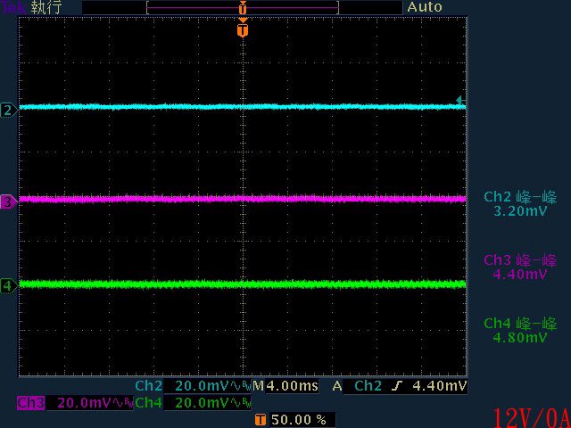 20.4mV/10.4mV/10mV,於純12V全負載輸出下12V/5V/3.3V各路低頻漣波分別為