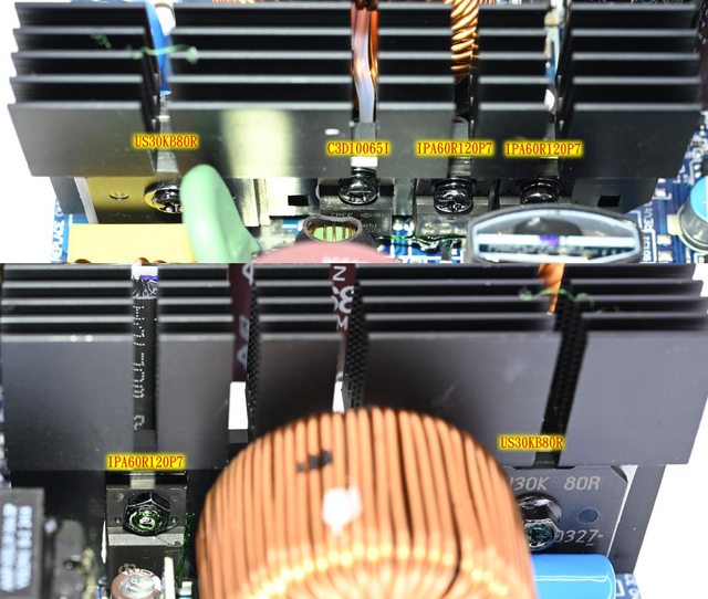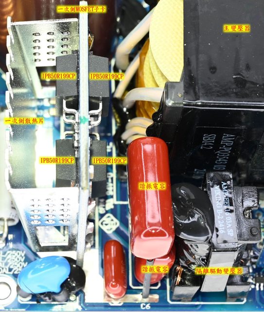 ○APFC、一次側及二次側12V同步整流MOSFET採用Infineon,APFC二極體採用Wolfspeed,