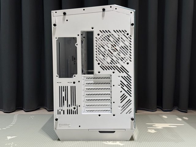 後方排風為120mm規格,一樣搭配長條狀開孔,但個人覺得後排風扇位置因為長條狀的設