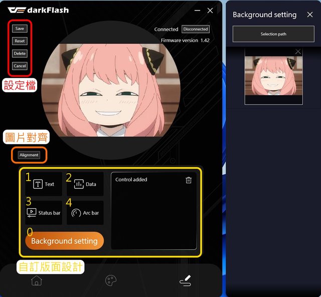背景圖片部分支援一般圖檔或是GIF動圖,自訂文字部分有包含字型、顏色、大小及位置