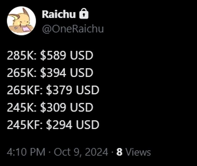 → Richun: 245K價格跟9600X對碰,還可能有9600X3D 1.160.14.40 10/12 00:51