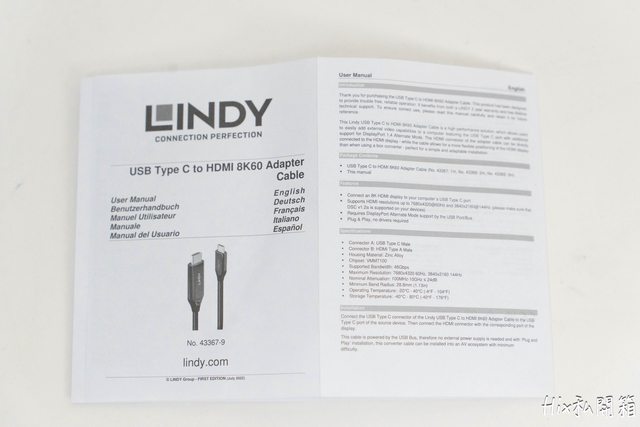 分別是林帝LINDY 主動式Type-C TO HDMI 2.1 8K HDR轉接線(代號43368)