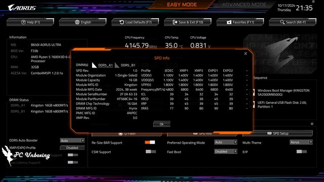 這次搭配 7600X3D 測試的記憶體使用 Kingston FURY Beast DDR5 RGB 2X16GB 6800 MT/