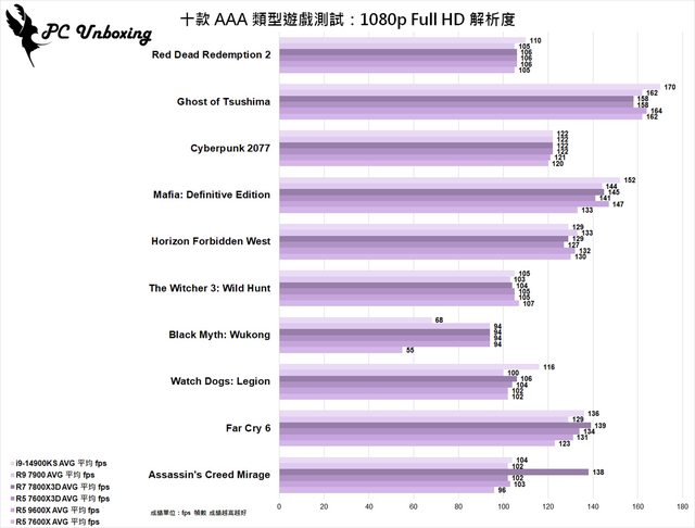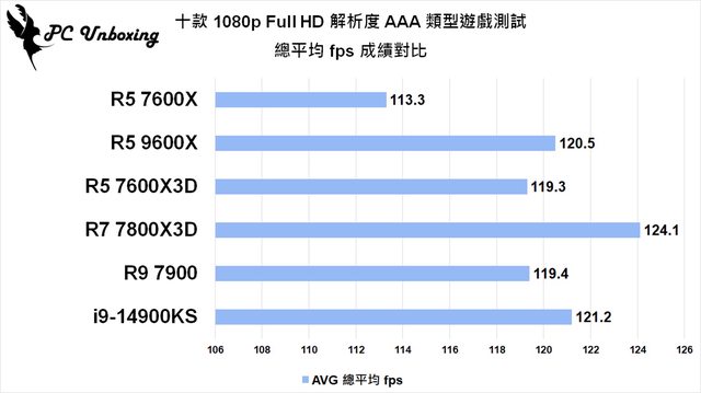 ;比 7800X3D 弱個 0.81% 左右,體驗劇情以及畫面表現為重的 3A 大作類型總平均 fps