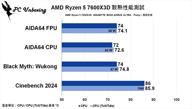 AMD Ryzen 5 7600X3D 處理器溫度與功耗測試