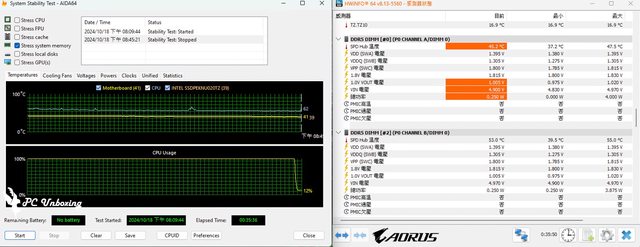 接著透過 AIDA64 System Memory 針對記憶體的壓力穩定度進行測試,測試設定為記憶體