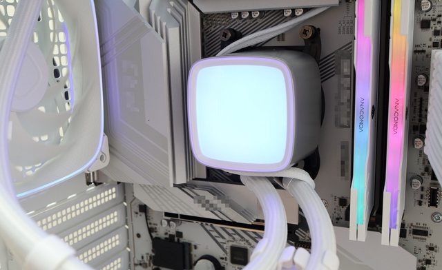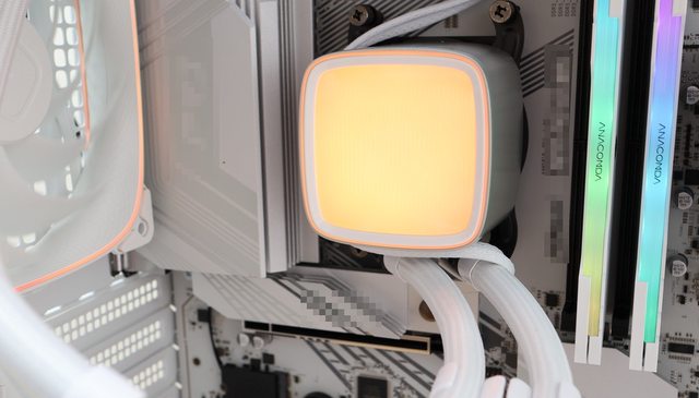 水冷頭發光採用簡單的高光波紋漸變上設計呈現