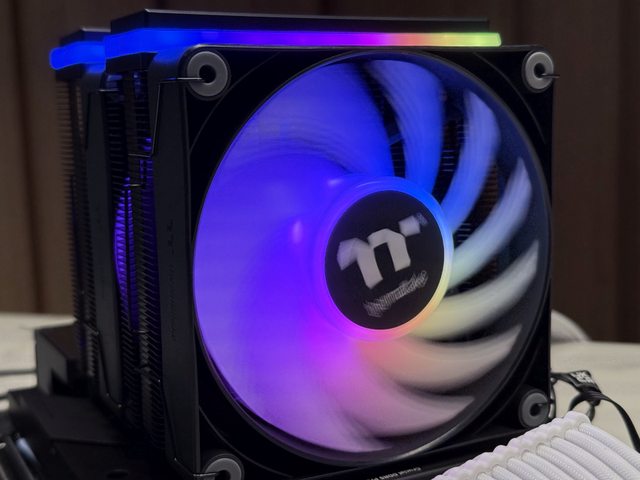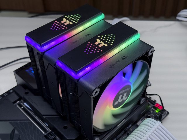 撇除ARGB燈效部分,散熱器本體為雙塔規格,6根6mm熱導管搭配兩顆12cm風扇,轉速最高