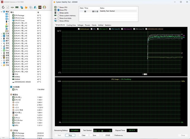為93度,P核心平均溫度為89.25度,核心電壓顯示為1.146V,降低約0.06V,但溫度直接