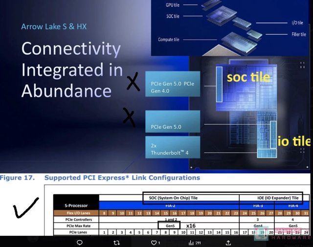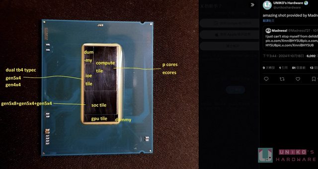 IOE TILE 主要負責 GEN5X4 和 GEN4X4,以及 2 組原生 USB-C 40 Gbps TB4 / USB4。SOC