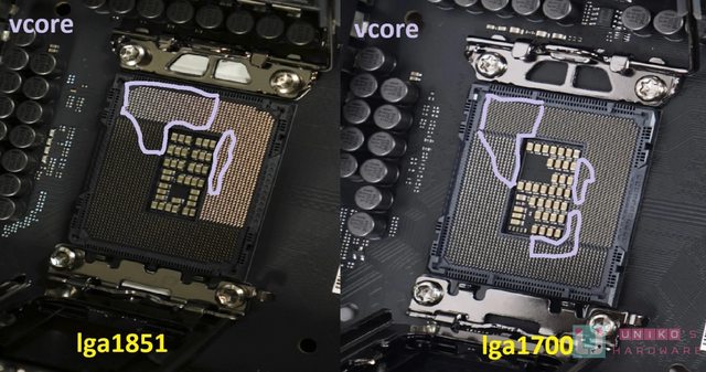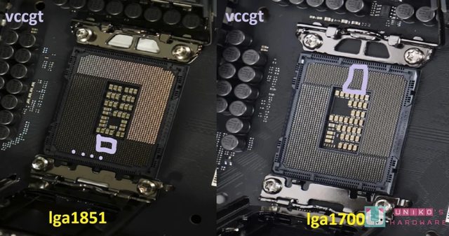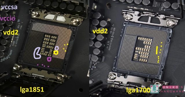 很大。如果從上看起,只看左半邊,新平台 LGA1851 是 VCORE、VNNAON、VCCSA、VCCGT。