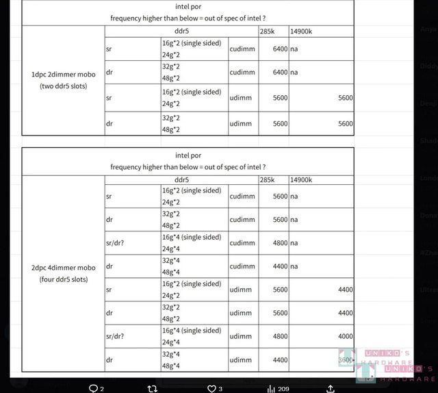 值得注意的是,如果只看 INTEL POR,CKD CUDIMM 也救不了 4 槽主機板的 4 根 DDR5 表