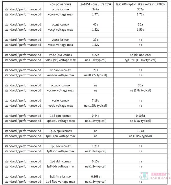 大致上可看為舊平台 LGA1700 的 VCCAUX 分拆為 VNNAON 與 VCCSA。