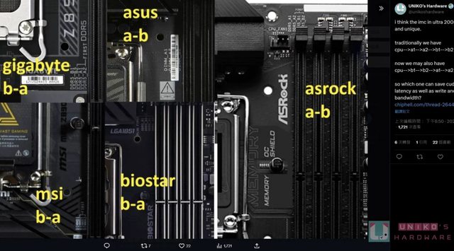 是 A1 A2 B1 B2。可是現在有不少 Z890 主機板改為 B1 B2 A1 A2 的插槽佈局,也就是 CP