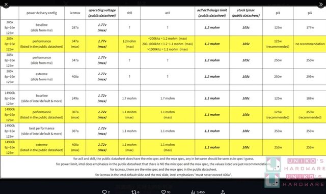 從公開的 INTEL 規格表和被流出的微星簡報,整理以下數據: