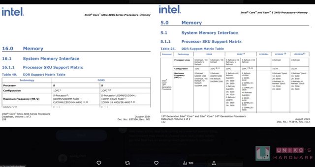 由於 JEDEC 好像沒有 6400 的 UDIMM,所以 INTEL 關於 UDIMM 的支援也是止步於 5600。