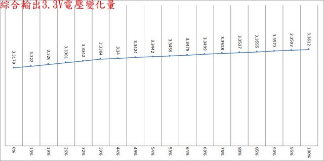 ○偏載測試,12V維持空載,測試3.3V滿載、5V滿載、3.3V/5V滿載的3.3V/5V/12V電壓變