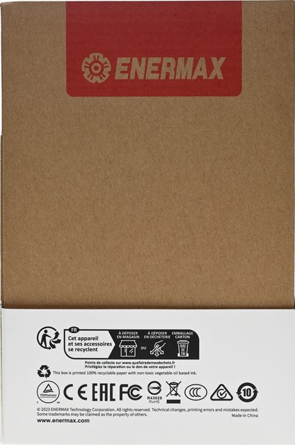 ▼外盒左側面有ENERMAX商標、安規認證、原廠網址、產地(中國)