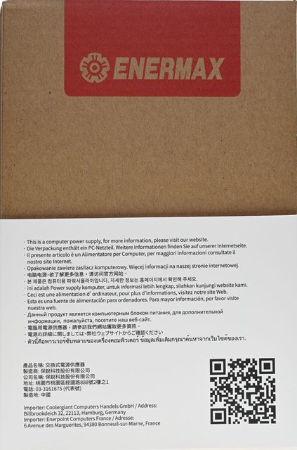 ▼外盒右側面有ENERMAX商標、多國語言"電腦用電源供應器,請參訪我們網站獲取更多資