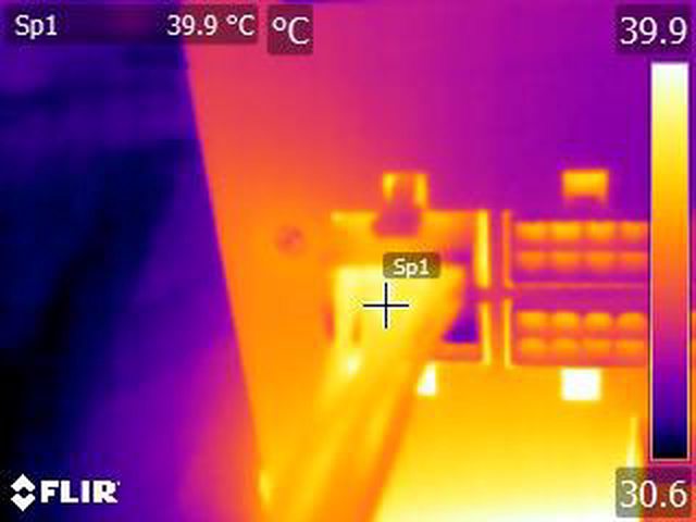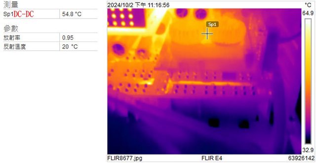 ▼電源供應器滿載輸出下DC-DC的紅外線熱影像圖(附註:安裝位置環境溫度會影響測試結