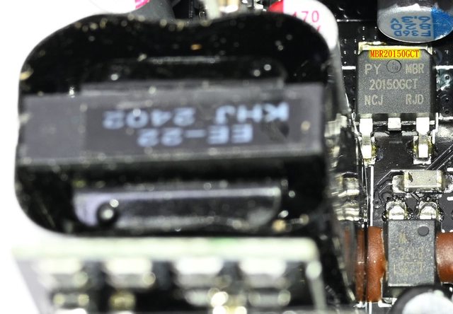 ○所有元件都移到主電路板正面,焊點整體做工良好,二次側區域及大電流路徑有敷錫