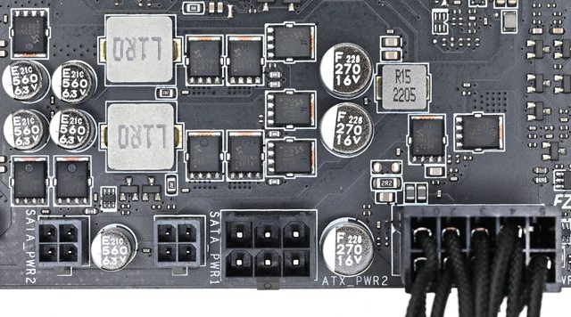 ▼一般來說SATA/大4P裝置電源會從ATX12VO主機板接出(圖中SATA_PWR1/2插座),不過
