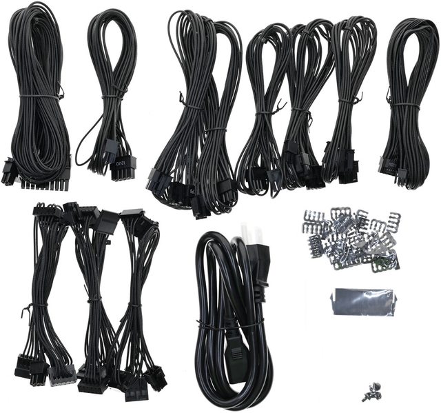 ▼模組化線材使用壓紋線,隨附3×1.5mm2 15A交流電源線、理線梳、ATX24P啟動器、固