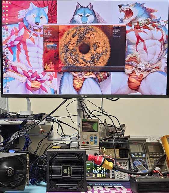○綜合全負載輸出下12V/5V/3.3V各路低頻漣波分別為9.2mV/12mV/15.2mV,於純12V全負