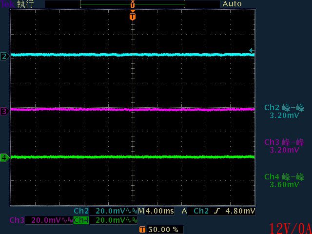 載輸出下12V/5V/3.3V各路低頻漣波分別為8.8mV/9.2mV/12mV