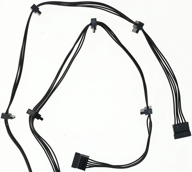 ▼2條SATA模組化線路,提供6個直角SATA接頭及2個直式SATA接頭,至第一個接頭線路長