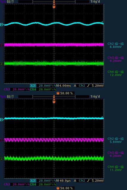 ,高頻漣波分別為5.6mV/9.2mV/11.2mV