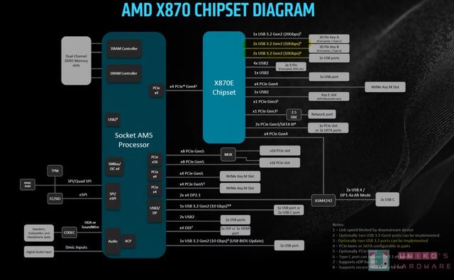在 AMD X870E、X870 晶片組主機板的開箱文章裡,關於晶片組規格的部份,礙於篇幅所限