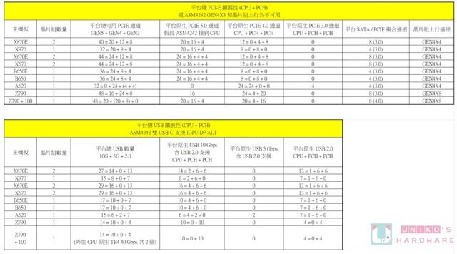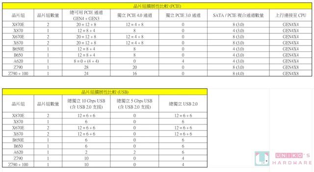 沒有解釋太多。以下整理主流晶片組的擴展性規格,修正一些錯誤。
